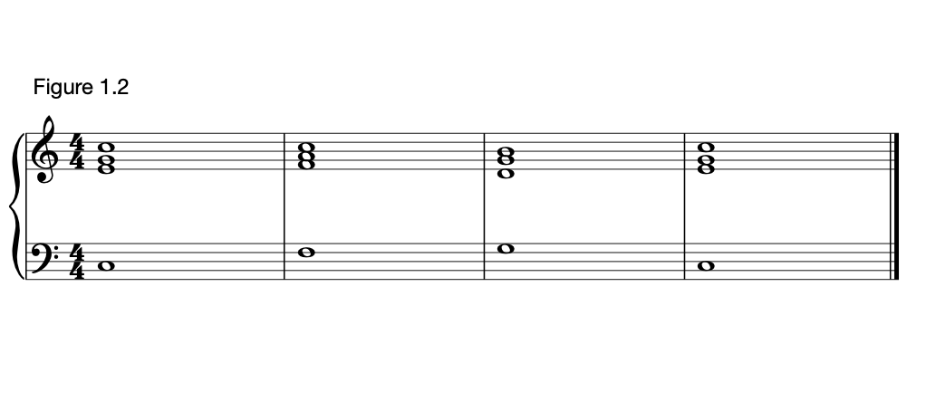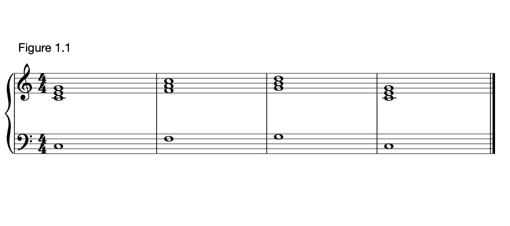 Look at the examples below. Figure 1.1 shows a chord progression where no attention has been paid to voice leading. Figure 1.2 shows the same chord progression with good voice leading. Try playing both progressions on the piano. In figure 1.1, the chord changes will feel jumpy or disjointed. In figure 1.2, the chords flow on from each other well and as a result, the chords will sound more expressive.
